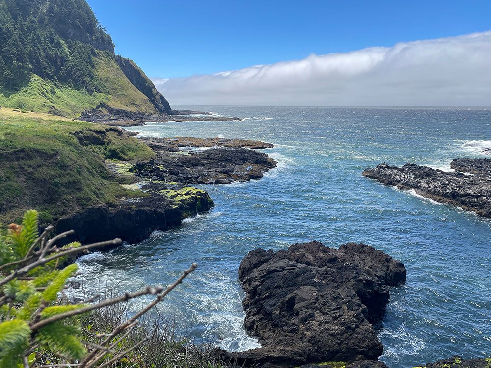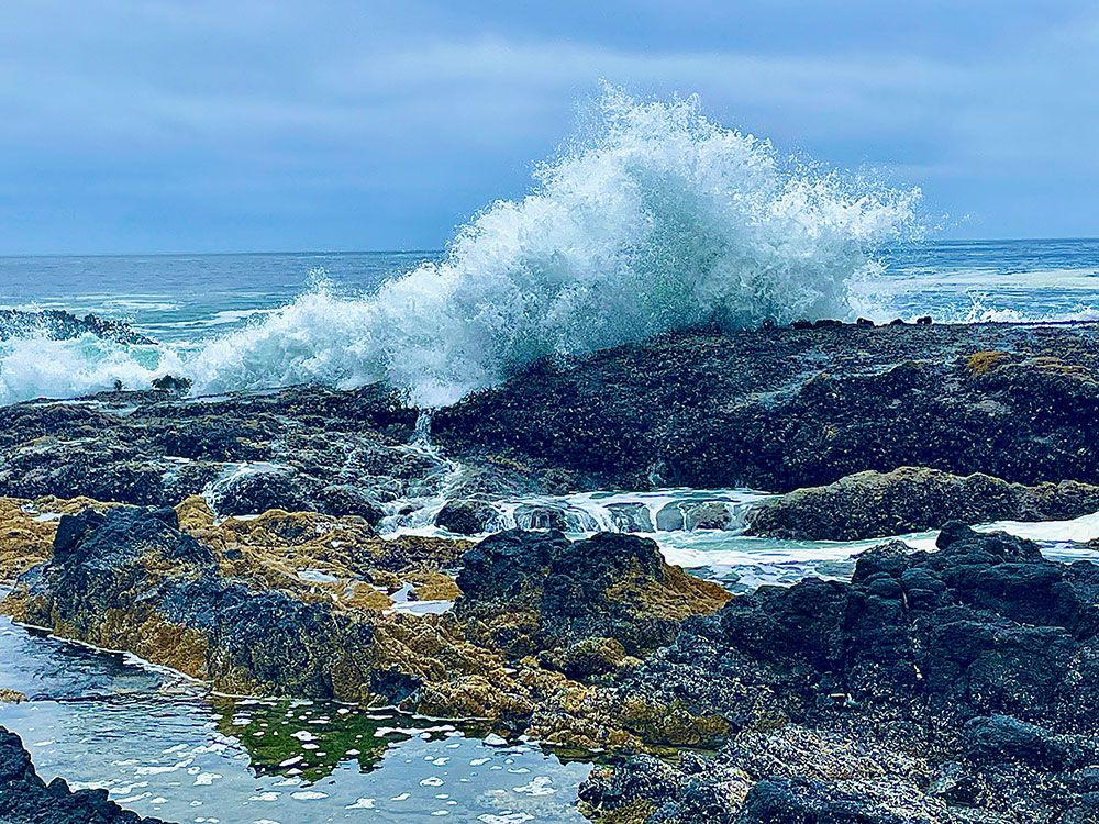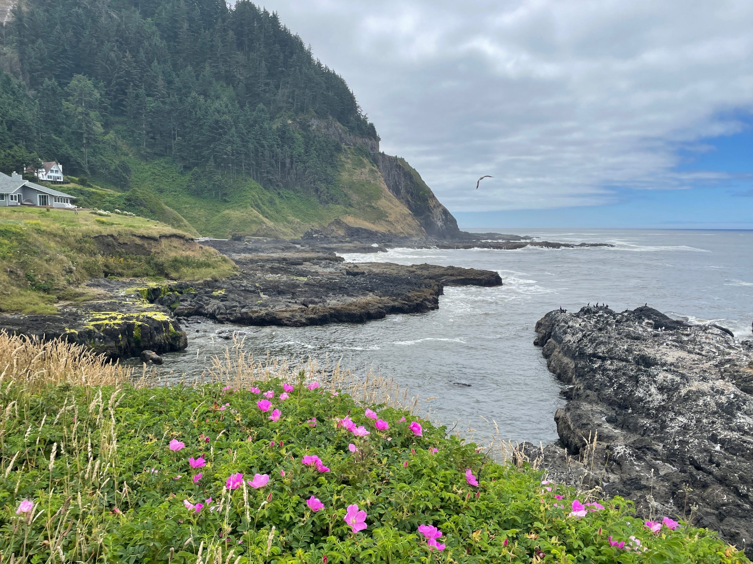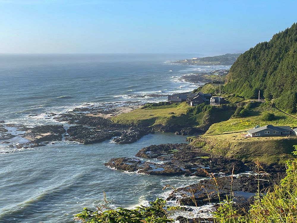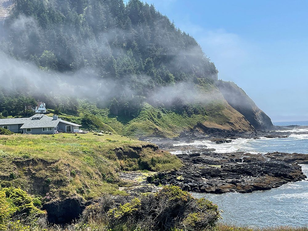 Experience the beautiful photos of the Carriage House at Dragons Cove, a vacation rental in Yachats Oregon. This property is right next to Cape Perpetua, one of the most scenic areas of the country. Photos from the property in including seals on the rocks close by, waves, beach, Cape Perpetua views.
